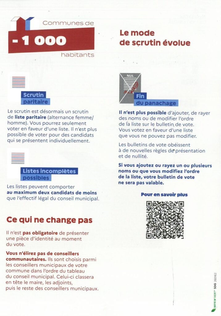 Attention lors des prochaines élections municipales pour les communes de moins de 1 000 habitants c’est la fin du panachage.